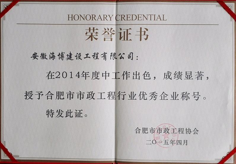 炎炎夏日,驕陽似火,我公司喜獲2015年度合肥市市政工程“廬州杯”獎,給酷熱的盛夏送來了陣陣涼意。由公司承建的合肥市高新區寧西路(長寧大道-肥西界)道橋及附屬工程經合肥市城鄉建設委員會及合肥市市...