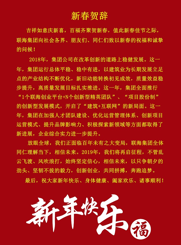 ------聯海集團2019年喜迎新春會 2019年1月12日注定是一個喜慶的日子、一個振奮人心的日子、一個對未來充滿期待的日子;聯海集團全體同仁共聚翡翠湖·迎賓館,大家歡聚一堂、凝心聚力、總結過去、理解當...