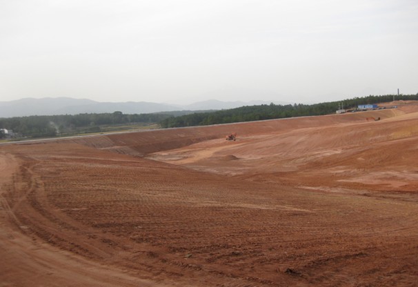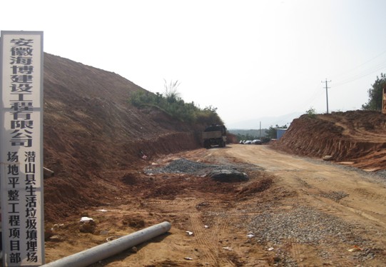 潛山縣生活垃圾填埋場場地平整項目位于潛山縣黃埔鎮黃埔村所屬山坳,總占地166畝,設計總庫容100萬m3,處理垃圾138噸/日。主要工程量為土方挖運8萬m3,石方爆破4萬m3,土方回填 (含垃圾壩)3.2萬m3,場地平整26萬m2。