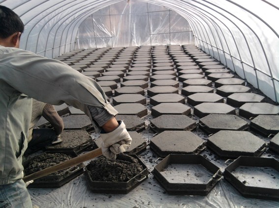 ——將混凝土預(yù)制塊搬到塑料大棚內(nèi)養(yǎng)護(hù)