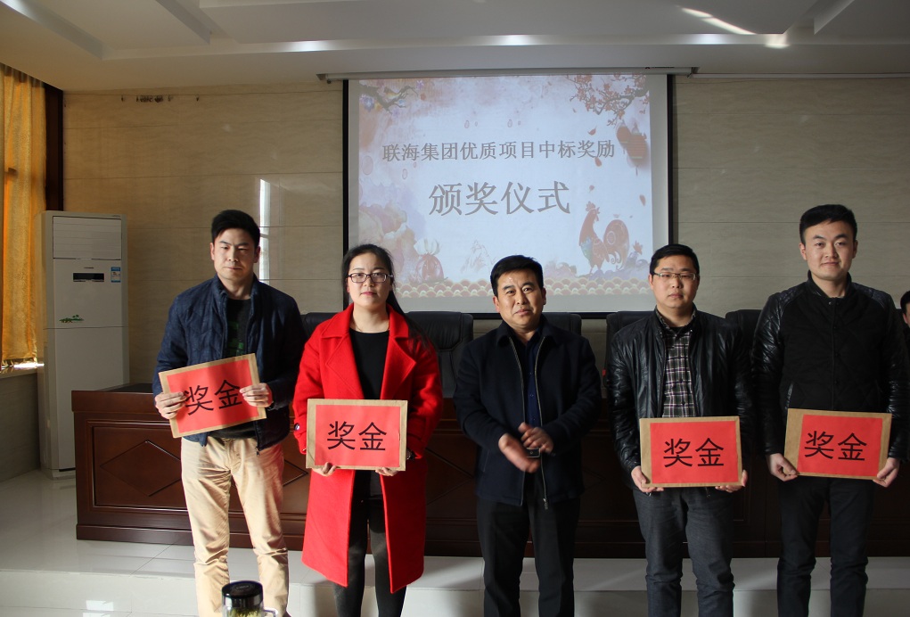 聯海本著利益共享,企業獲利惠及員工,獎勵典型,帶動全員的思想于3月11日在集團第一會議室舉行了優秀項目中標獎勵的頒獎儀式。儀式由企業發展部主持,企業法人、總經理進行頒獎并與獲獎者合影留念。