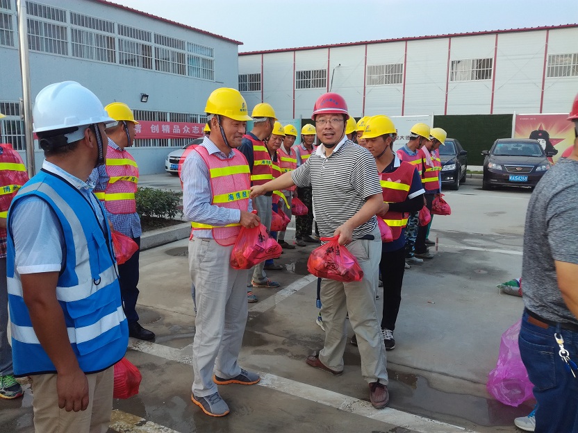 盛夏時節,連續多日40度的高溫炙烤著合肥大地。7月28日,合肥市經開區重點局張局長、董處長和海納項目辦何主任冒著酷暑,來到我公司海納新能源項目,給項目部送來了防暑降溫物資并逐一發放到工人手中。張局長對頂著烈日奮戰在一線的全體施工人員給予高度的贊賞和關心。投資運營中心周總和部分管理人員、現場監理、工人代表,參加了慰問儀式。周總代表項目部對重點局領導表示感謝,要求全體員工鼓足干勁,精心組織精心施工,不辜負各級領導的關懷和期待。