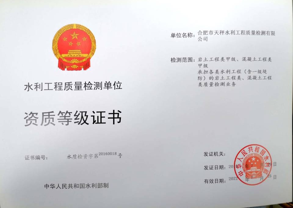 8月6日,水利部公告2019年度甲級水利工程質(zhì)量檢測單位資質(zhì)行政許可,天秤檢測公司申報的巖土類(新申請)、混凝土類(延續(xù)申請)均獲批準(zhǔn),偕同已獲的量測類甲級資質(zhì),“三甲”及第!