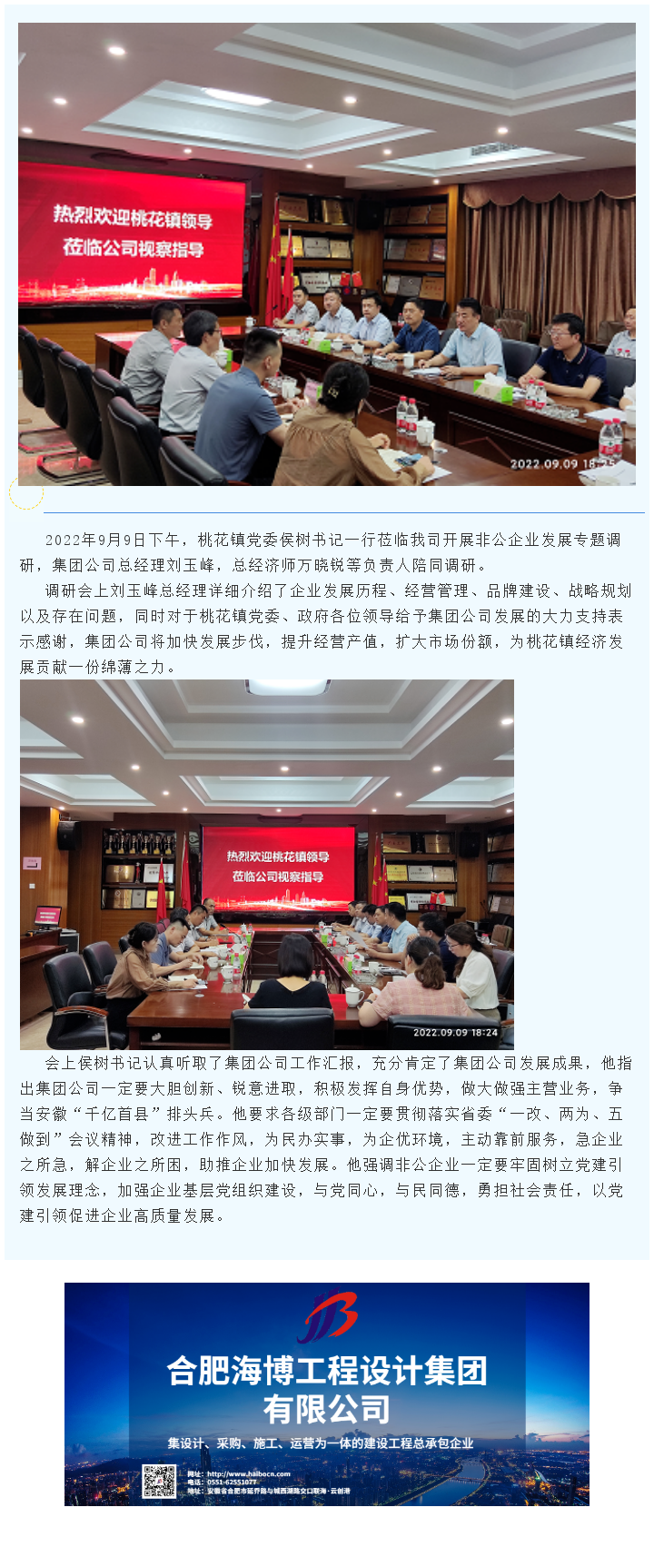 桃花鎮黨委侯樹書記一行蒞臨我司調研指導