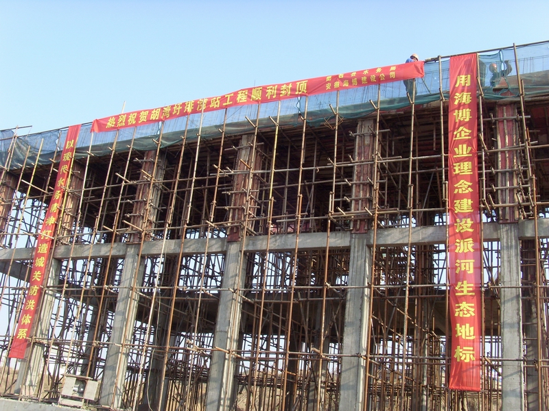 2008年12月18日上午10時58分,胡灣圩排澇站工地現場鞭炮齊鳴、煙花齊放。胡灣圩排澇站工程主體結構順利封頂。胡灣圩排澇站工程是肥西縣打造“生態肥西”防洪治污綜合治理工程的重要組成部分,是城關防洪排澇的骨干工程。該工程于2008年5月破土動工,在縣委、縣政府、縣水務局及相關單位的關心支持下,在建設、設計、監理、施工單位的共同努力下,截至目前,該工程已完成總工程量的73.5%,明年汛期,新機組的轟鳴將為城關居民提供更加安全的保護屏障。