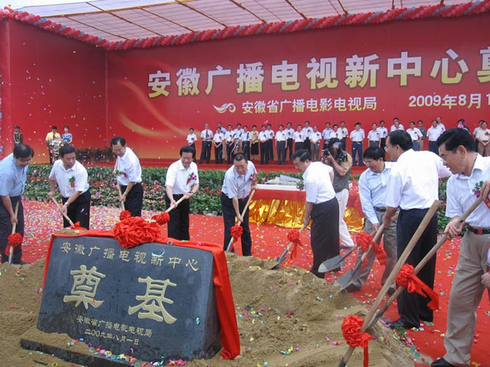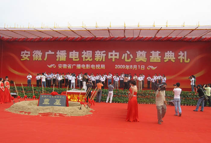 8月1日上午9:18分,合肥市政務文化新區美麗的天鵝湖畔,鑼鼓喧天,彩旗招展,我公司承建的安徽“861”行動計劃重大項目、省廣播電視新中心項目奠基開工儀式在此隆重舉行。