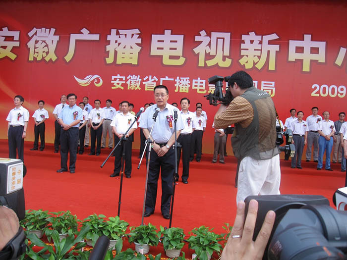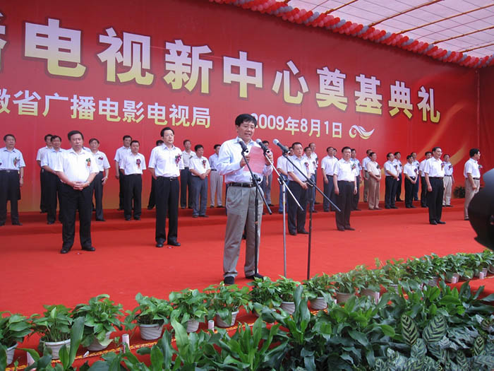 儀式上省廣電局張蘇洲局長和孫金龍書記先后在典禮上致辭,王金山同志宣布奠基開工儀式正式啟動,省市主要領導同志為奠基碑培土奠基,兩邊的禮花在掌聲中同時綻放,施工機械也同時鳴笛,為省廣播電視新中心項目正式開工拉開了序幕。