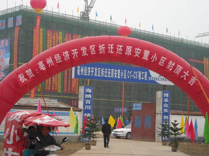 9月9日上午,金秋送爽、丹桂飄香,紅旗招展、鞭炮齊鳴,值國際(亳州)中醫藥博覽會暨第25屆全國(亳州)中藥材交易會隆重召開之際;我司承建的亳州經濟技術開發區拆遷還原安置小區C1~C5#樓工程順利封頂。