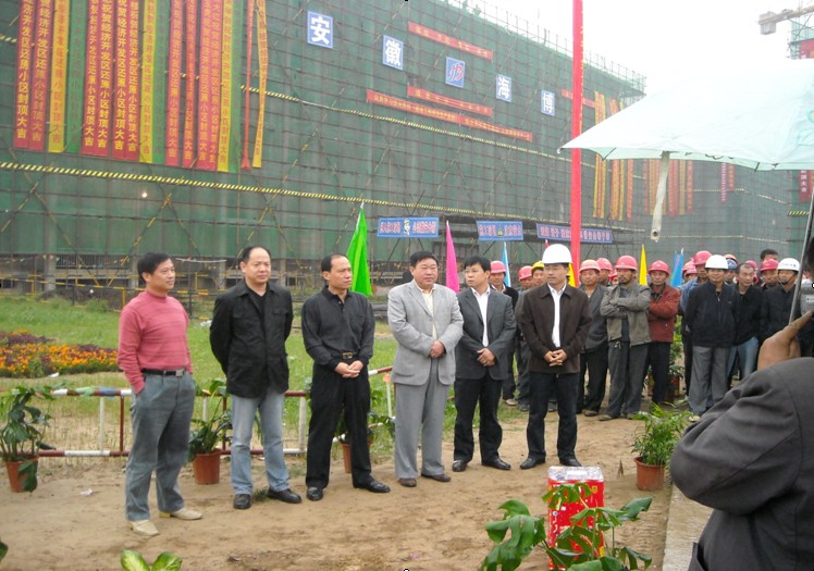 亳州市經濟開發區管委會副主任、亳州新城建設投資有限公司總經理魏師出席封頂儀式并致辭,亳州市經濟開發區管委會卞介山主任及各參建單位:沈陽中鼎建筑設計有限公司、亳州市巖土地基勘測有限公司、合肥南巽工程建設監理有限責任公司等相關負責人出席封頂儀式并表示祝賀。